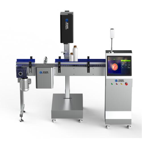 原理:在自動(dòng)化生產(chǎn)線上,經(jīng)熱封口或電磁感應(yīng)封口的工件,被輸送至紅外熱像檢測(cè)工位,紅外熱像儀對(duì)熱封口后的瓶蓋進(jìn)行熱圖像拍攝,并將該熱像圖傳入圖像高速處理系統(tǒng)進(jìn)行運(yùn)算與識(shí)別。通過(guò)對(duì)鋁箔封口后熱圖像的溫度分布模型進(jìn)行統(tǒng)計(jì)學(xué)分析,判斷封口質(zhì)量是否合格。不合格品被剔除至指定收集區(qū)域,合...